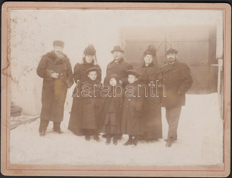 cca 1900 Gyógyszertár a megváltóhoz, Körmend; a gyógyszertár tulajdonosa, családja, s egyben a személyzete, keményhátú fénykép, pecséttel jelzett, 12x16 cm