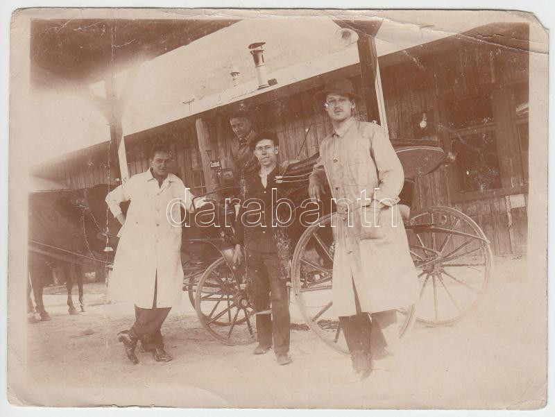 cca 1910 Fiákeresek, bérkocsisok a kocsiszínben fotó 12x9 cm https://www.darabanth.com/hu/202-Gyorsarveres/202.0/Festmeny-mutargy-papirregiseg-egyeb/Foto~200042/cca-1910-Fiakeresek-berkocsisok-a-kocsiszinben-foto-12x9-cm~II650020