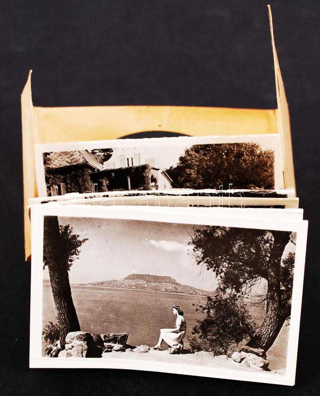 Leírás: cca 1940 Barasits fotó: Fonyód, 10 db 4,5x8 cm-es képet tartalmazó eredeti fénykép leporellóba hajtogatva