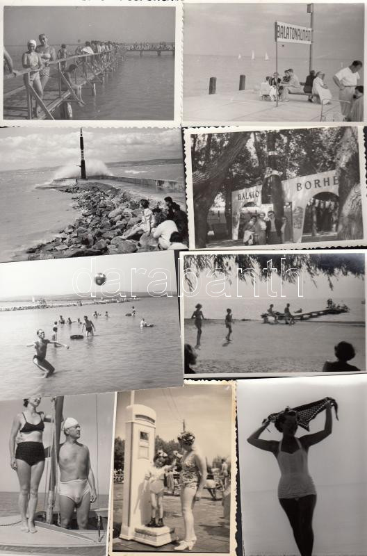 Leírás: cca 1950-1970 Balatoni életképek, 9 db 6x9 cm-es fénykép