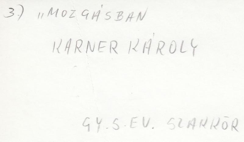 cca 1970-1980 Karner Károly: Mozgásban, feliratozott vintage fotóművés... https://www.darabanth.com/hu/202-Gyorsarveres/202.0/Festmeny-mutargy-papirregiseg-egyeb/Foto~200042/cca-1970-1980-Karner-Karoly-Mozgasban-feliratozott-vintage-fotomuveszeti-alkotas-11x18-cm~II799873