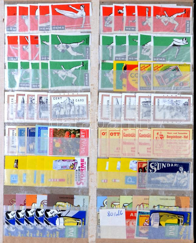 Leírás: Főleg külföldi gyufacimke gyűjtemény, 3.600 db különféle rengeteg sorral, 2 berakóban / 3.600 different mostly foreign matchbox labels