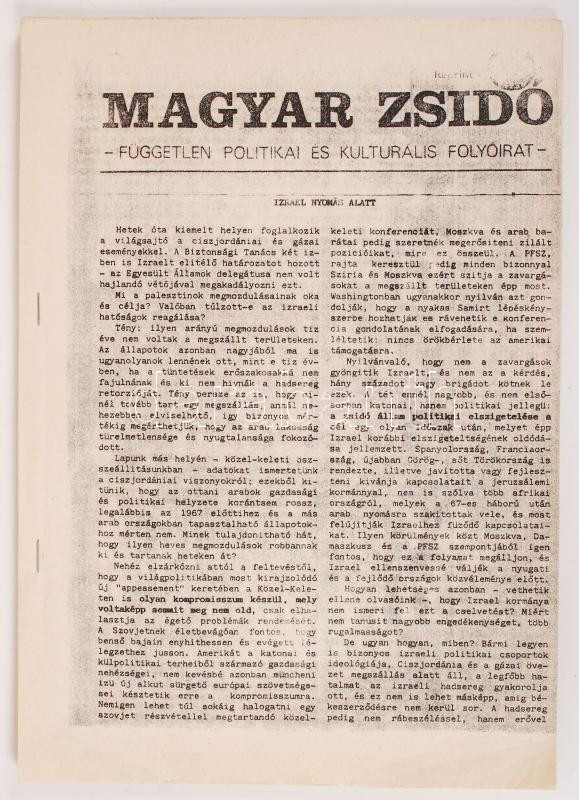 1988 Magyar Zsidó független politikai és kulturális folyóirat első &am... https://www.darabanth.com/hu/202-Gyorsarveres/202.0/Festmeny-mutargy-papirregiseg-egyeb/Judaika~200001/1988-Magyar-Zsido-fuggetlen-politikai-es-kulturalis-folyoirat-elso-238211-allam-altal-elkob~II800593