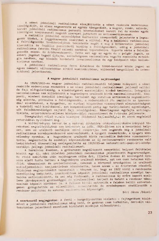 Leírás: 1988 Magyar Zsidó független politikai és kulturális folyóirat első – állam által elkobzott – számának reprint kiadása,65 p