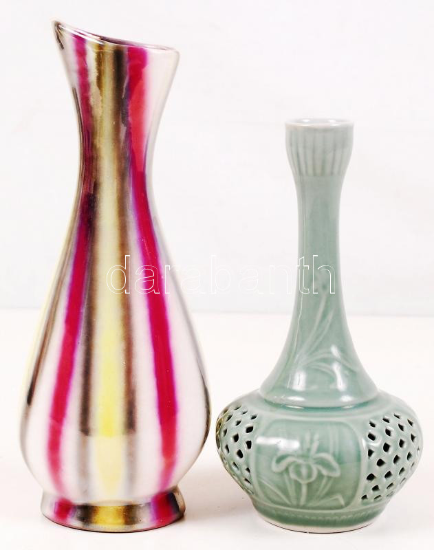 Leírás: 2 db kerámia váza, hibátlan, jelzett, m: 17 és 21 cm