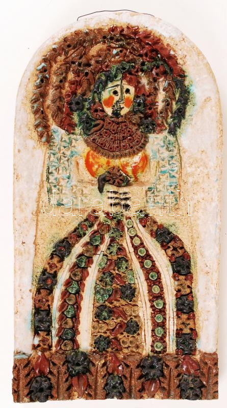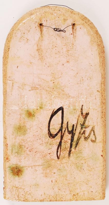 Leírás: Gy.ZS. monogramos iparművész fali kép, apró lepattanásokkal, kézzel festett, mázas kerámia, 42×23 cm