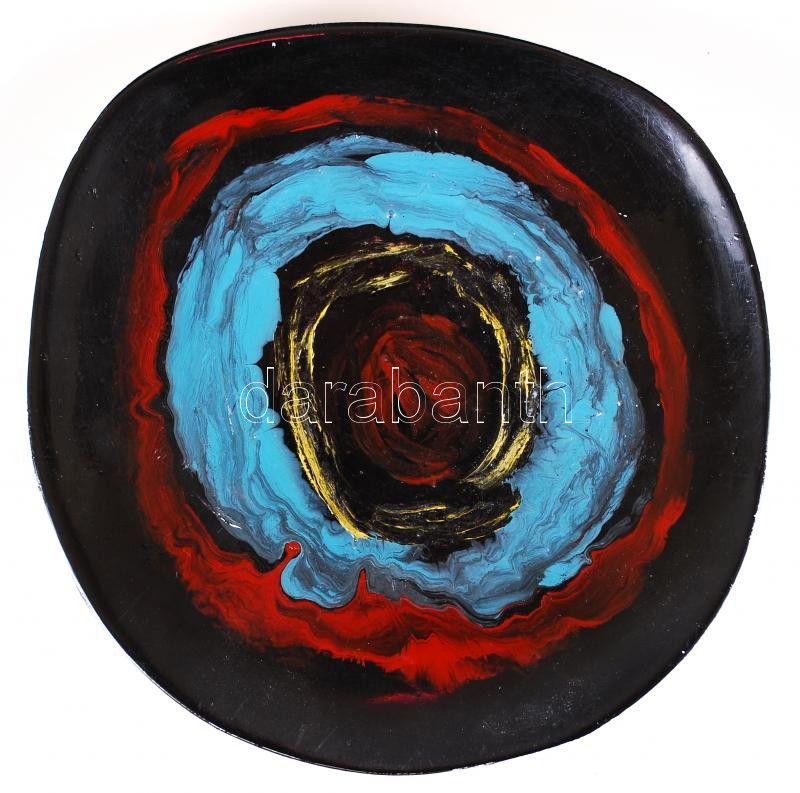 Leírás: Jelzés nélkül, kézzel festett kerámia tányér d: 22 cm