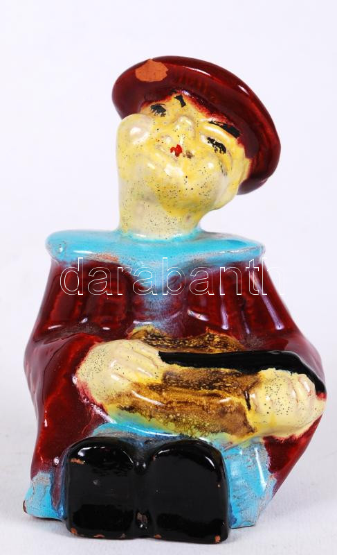 Leírás: Jelzett art deco mázas kerámia figura, apró lepattanással a kalapon, m:11 cm