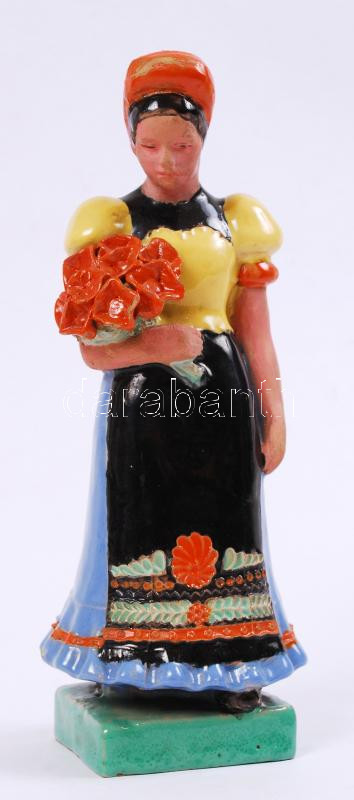 Leírás: Nyeste jelzéssel, asszony virágcsokorral, mázas kézzel festett kerámia, apró lepattanásokkal, m:25 cm