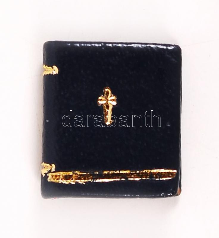 Leírás: Ave Maria. Minikönyv, illusztrált, műbőr kötés, tartóban, 1x1 cm.