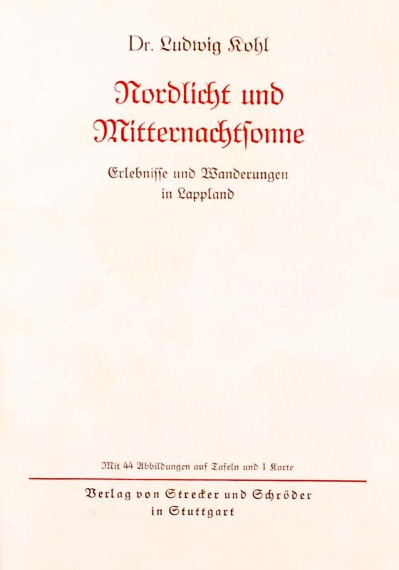 Leírás: Ludwig Kohl: Nordlicht und Mitternachtsonne. Erlebnisse und Wanderungen in Lappland. Stuttgart, 1926. Strecker und Schröder