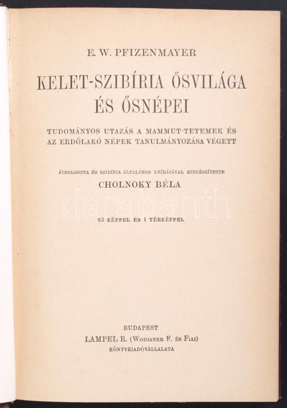 Magyar Földrajzi Társaság Könyvtára: Pfizenmayer: Kelet-Szibíria őslakói. Aranyozott kiadói egészvászon kötésben, Bp., Lampel és Wodianer, Szép állapotban