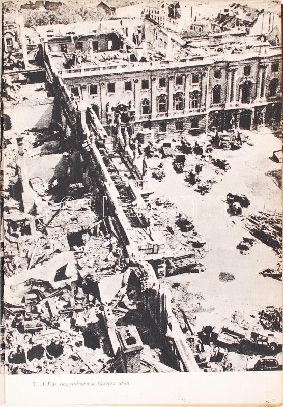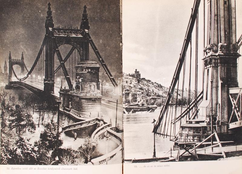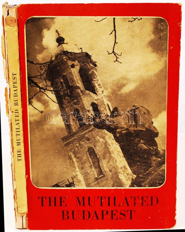 The Mutilated Budapest (A megcsonkított Budapest), angol-magyar nyelvű fotóalbum, 65 db illusztrációval a háborús pusztításokról. 1946, Officina Press. Kartonált, gerince sérült, kopottsa állapot.