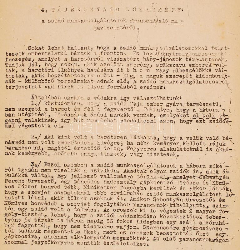 1942 Honvédségi tájékoztató közlemények 5 db: a zsidó munkaszolgálatosokról, a magyar fegyverek működéséről. a zsákmányolásról és egyéb érdekességekről