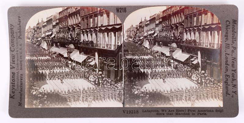 Leírás: cca 1918 I. világháború. Amerikai katonák Párizsban. Sztereófotó. /