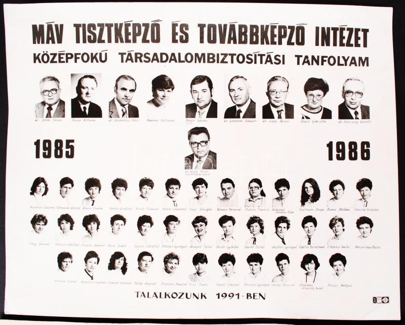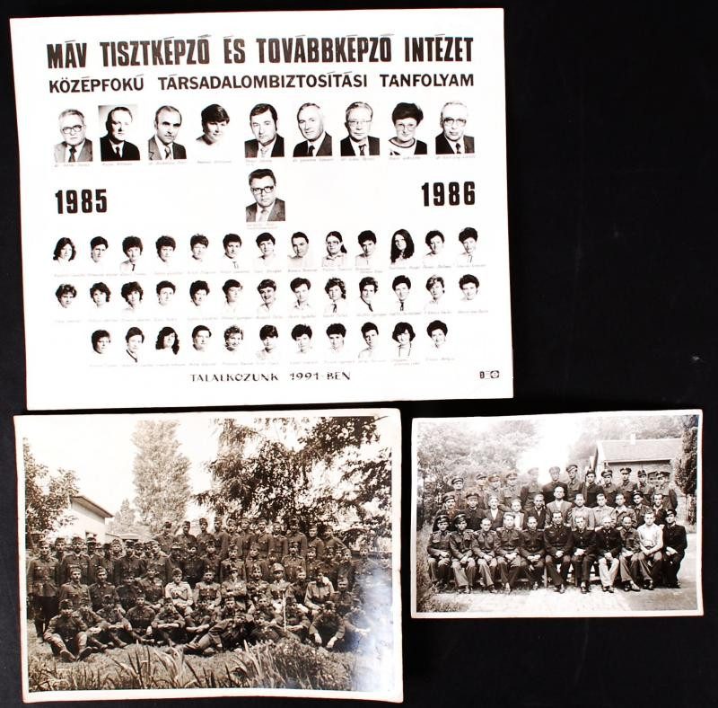 cca 1940-1950 Katonai csoportképek, 2 db, 18x13 24x18 cm-es méretben, 1 db MÁV Tisztképző és Továbbképző Intézet középfokú társadalombiztosítási tanfolyam végzős hallgatóinak csoportképe (1985-1986) /