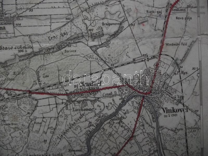 cca.1895 K. u. K. militär- geographisches Institut: Diakovár és Vinkov... https://www.darabanth.com/hu/202-Gyorsarveres/202.0/Festmeny-mutargy-papirregiseg-egyeb/Militaria~200004/cca1895-K-u-K-militar-geographisches-Institut-Diakovar-es-Vinkovce-katonai-vaszon-terkep~II495047