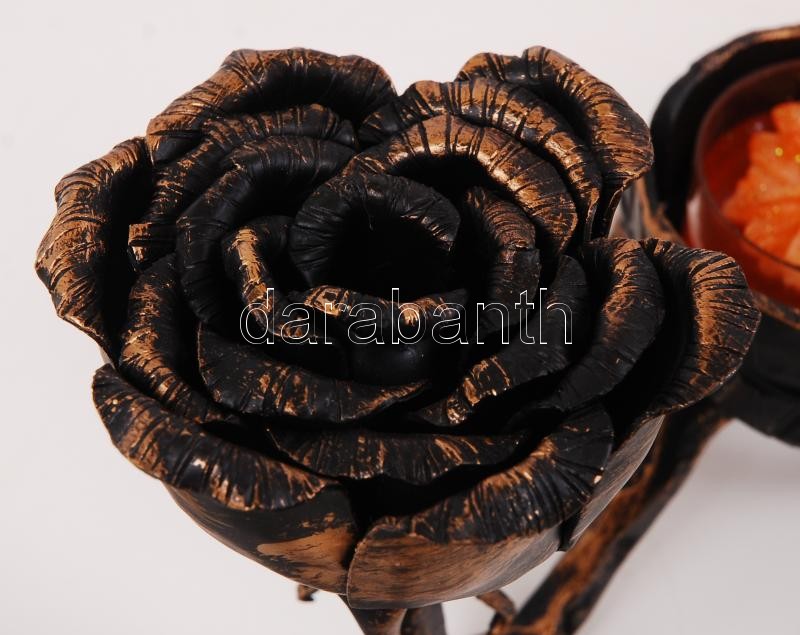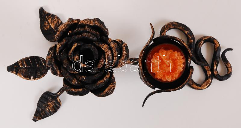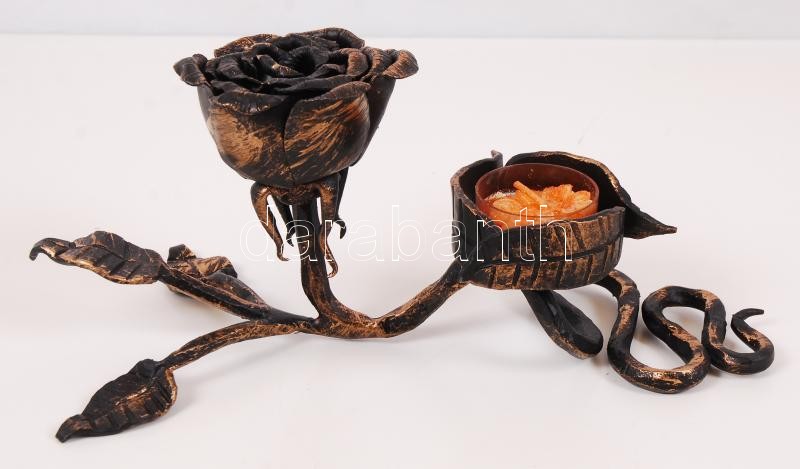 Leírás: Futó István (1970-): Antikolt rózsás gyertyatartó, kovácsolt vas, jelzett, hibátlan, 23×11 cm, m:9 cm
