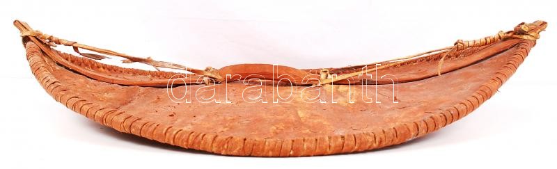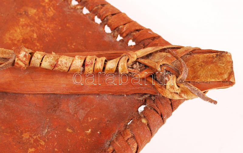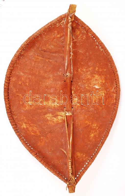 Leírás: cca 1920 Festett, szépen kidolgozott, nagyméretű afrikai törzsi bőrpajzs / African leahter shield 80x60 cm