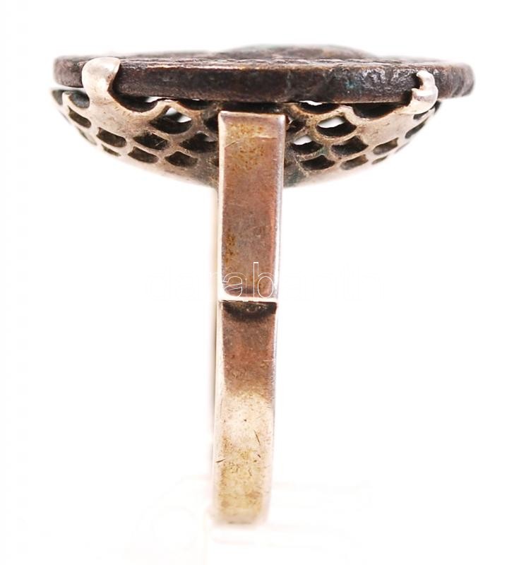 Leírás: Ezüst gyűrű (Ag) sérült római érmével, jelzett, mérete: 57, bruttó: 9,5 g