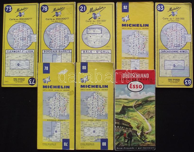 ~1950-1970 8db klf Esso és Michelin térkép https://www.darabanth.com/hu/202-Gyorsarveres/202.0/Festmeny-mutargy-papirregiseg-egyeb/Nyomtatvanyok~200007/7E1950-1970-8db-klf-Esso-es-Michelin-terkep~II456972