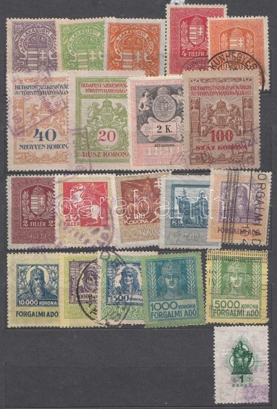Leírás: 45 klf magyar okmány és illetékbélyeg