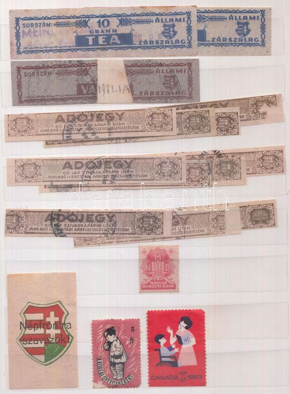 Leírás: Néhány száz illetékbélyeg, levélzáró, segélybélyeg + 5 db boríték 1900-1940-es évekből 10 lapos közepes berakóban