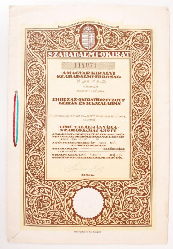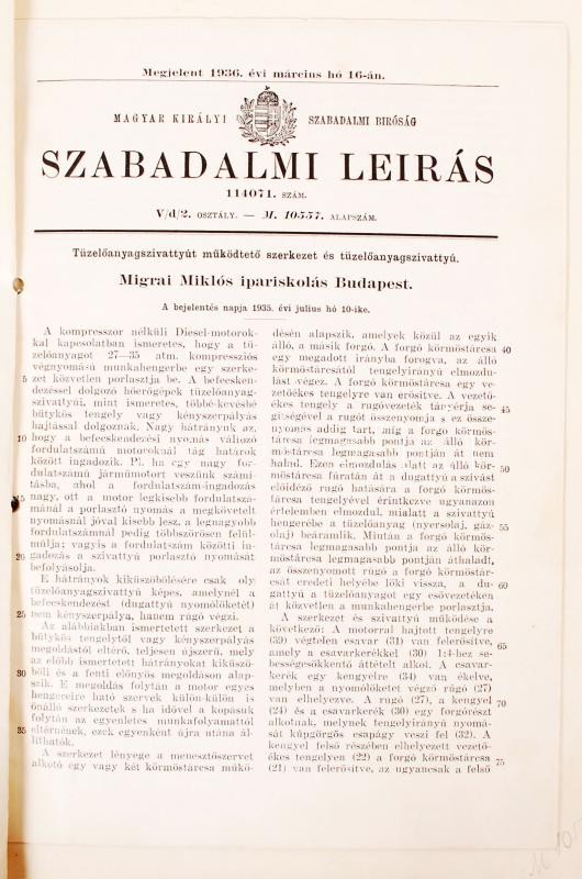 1935 Bp., Szabadalmi okirat tüzelőanyagszivattyút működtető szerkezetr... https://www.darabanth.com/hu/202-Gyorsarveres/202.0/Festmeny-mutargy-papirregiseg-egyeb/Okmanyok~200028/1935-Bp-Szabadalmi-okirat-tuzeloanyagszivattyut-mukodteto-szerkezetrol-leiras-es-3-rajz~II800555