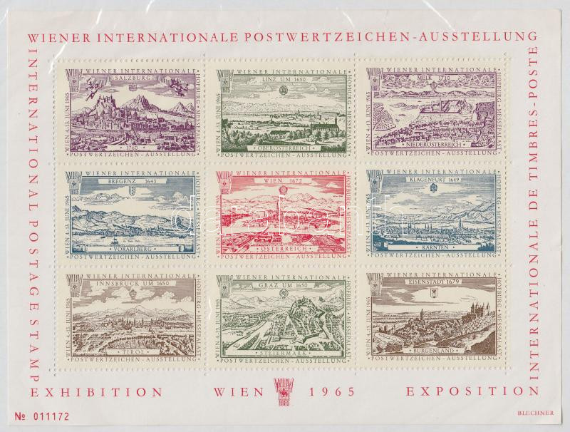 Leírás: 1965 WIPA bélyegkiállítás levélzáró kisív (apró ívszéli hibák)