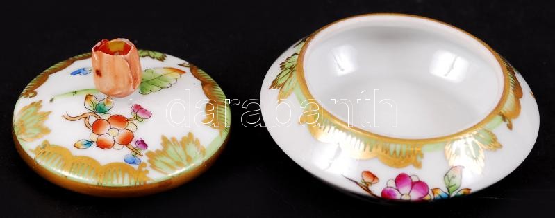 Leírás: Herendi Viktória mintás ékszertartó, kézzel festett, jelzett, hibátlan, d:6,5 cm
