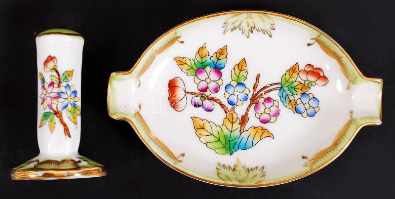 Leírás: Herendi Viktória mintás porcelán hamutartó és nyomó, kézzel festett, hibátlan, jelzett, 9x5,5 cm