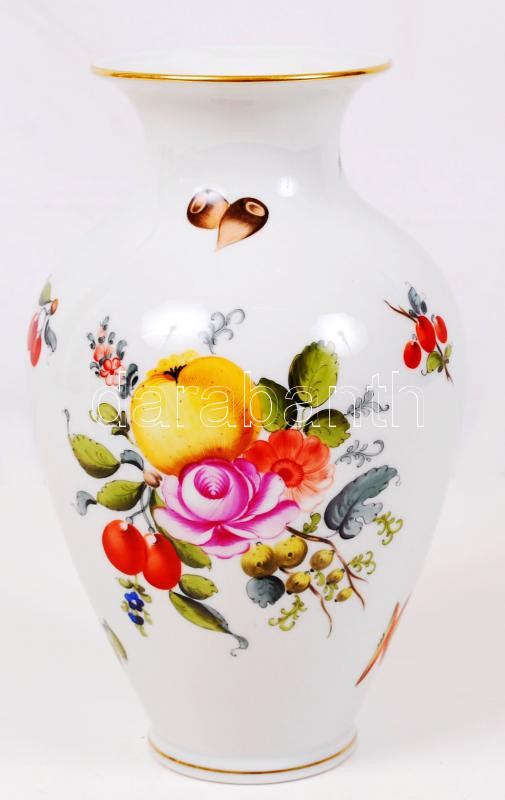 Herendi gyümölcs-virág mintás váza, jelzett, kézzel festett, hibátlan,... https://www.darabanth.com/hu/202-Gyorsarveres/202.0/Festmeny-mutargy-papirregiseg-egyeb/Porcelan~200013/Herendi-gyumolcs-virag-mintas-vaza-jelzett-kezzel-festett-hibatlan-m23-cm-Herend-vase~II762837
