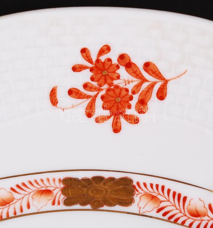 Leírás: Herendi narancssárga Apponyi mintás lapostányér szett, kézzel festett, hibátlan, jelzett, d:25,5 cm