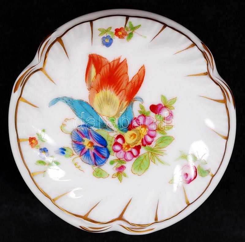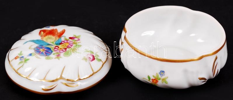 Leírás: Herendi virágmintás porcelán bonbonier, hibátlan, jelzett, d: 7,5 cm
