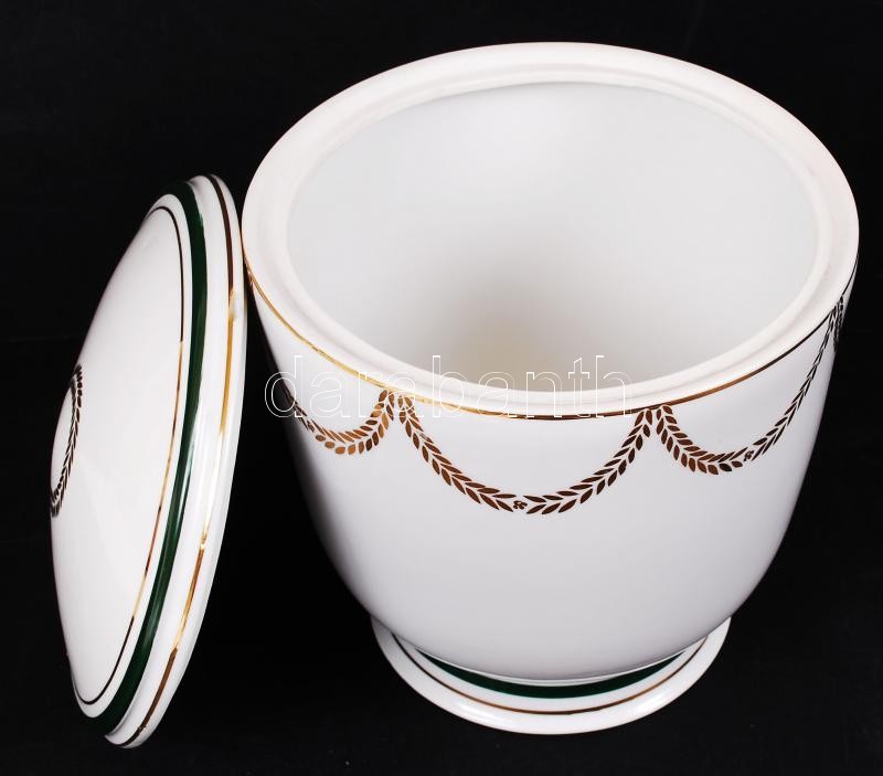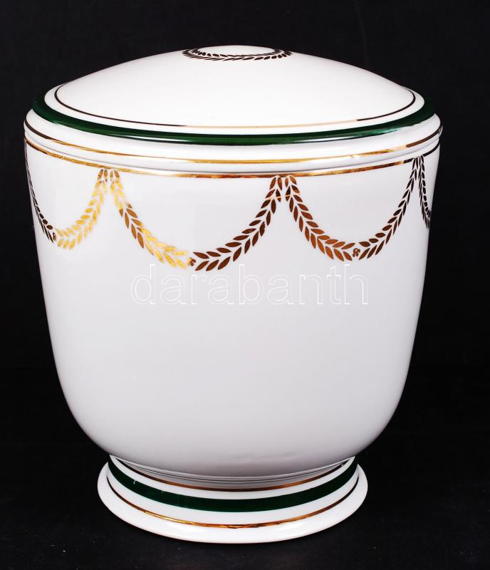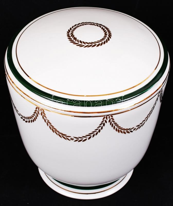 Leírás: Hollóházi porcelán aranyozott díszítésű urna, hibátlan, m: 20 cm, d: 19 cm