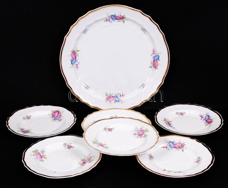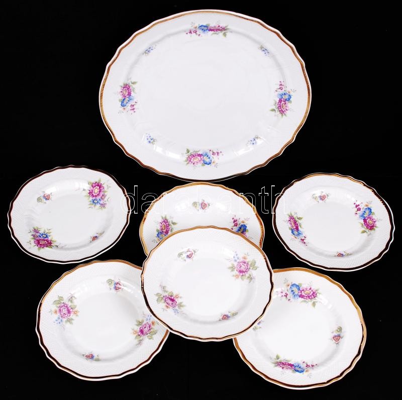 Leírás: Hollóházi süteményes készlet, matricás, jelzett, hibátlan, d:32 cm, d:19 cm