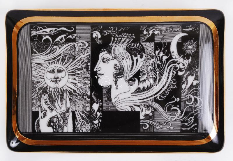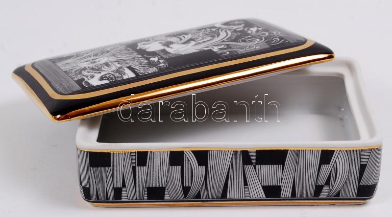 Szász Endre által tervezett Hollóházi jelzett porcelán doboz hibátlan állapotban / Faces designed by Endre Szasz Hollohaza chinaware box in flawless condition 14x9x4 cm