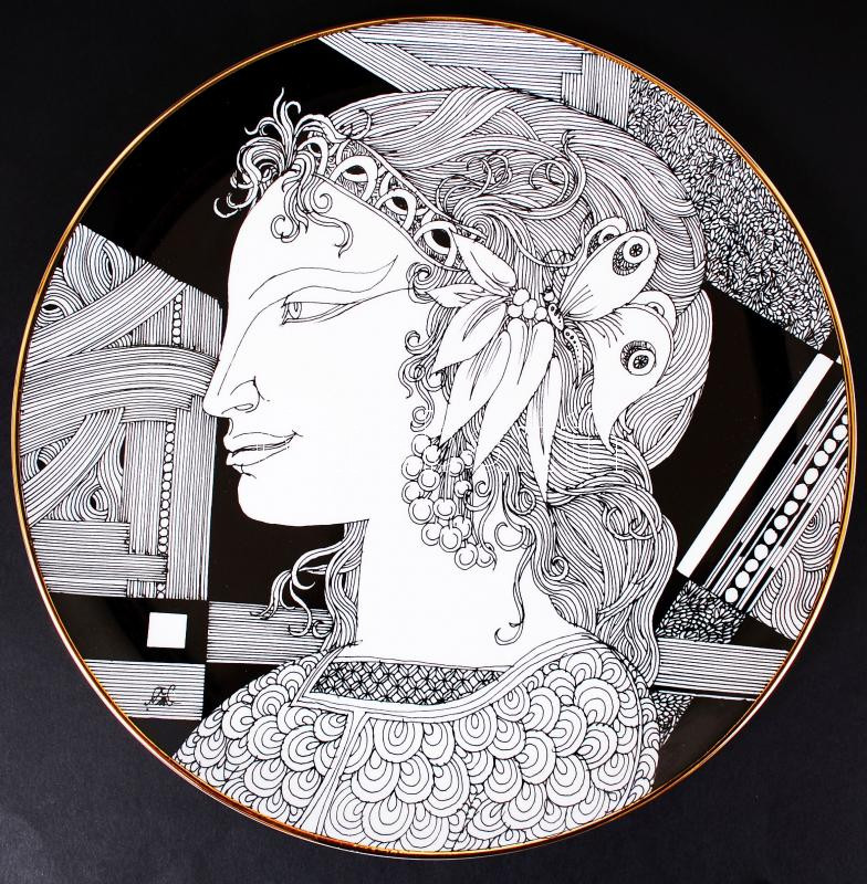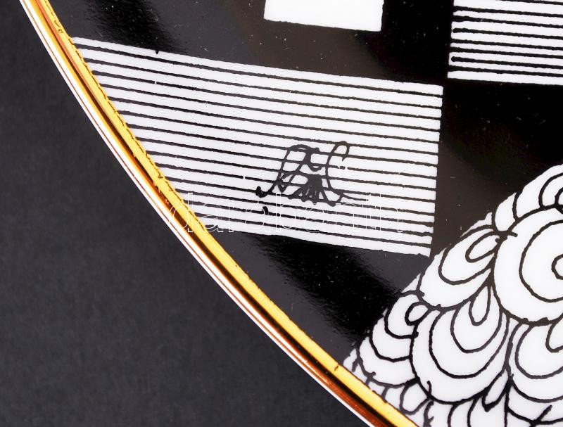 Leírás: Szász Endre által tervezett Hollóházi jelzett porcelán tál, hibátlan, d:31 cm / Faces designed by Endre Szasz Hollohaza chinaware plate