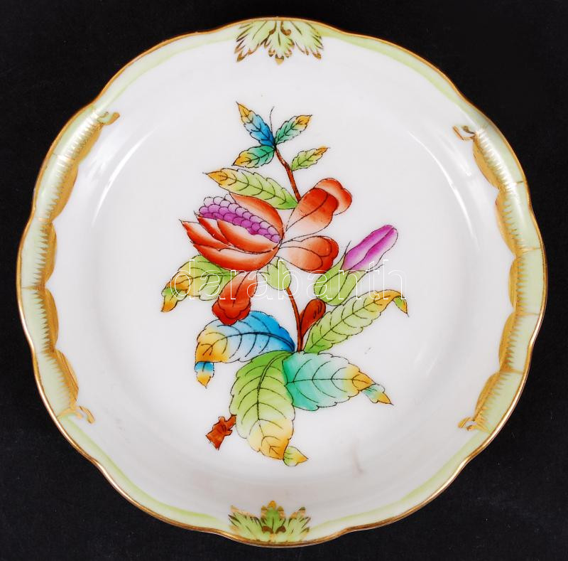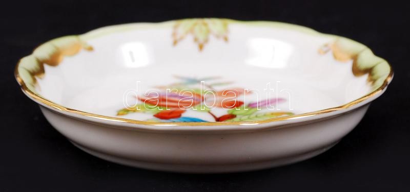 Leírás: Viktória mintás, kézzel festett és aranyozott, jelzett Herendi tálka /
