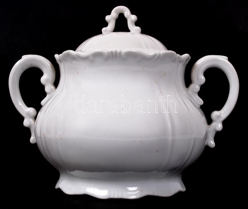Leírás: Zsolnay fehér porcelán cukortartó, hibátlan, jelzett, m: 14cm