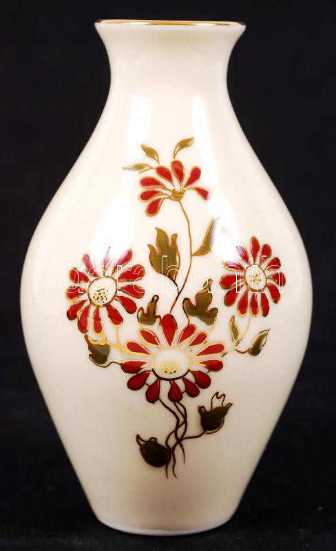 Leírás: Zsolnay virág mintás kis váza, kézzel festett, jelzett, hibátlan, m:13 cm