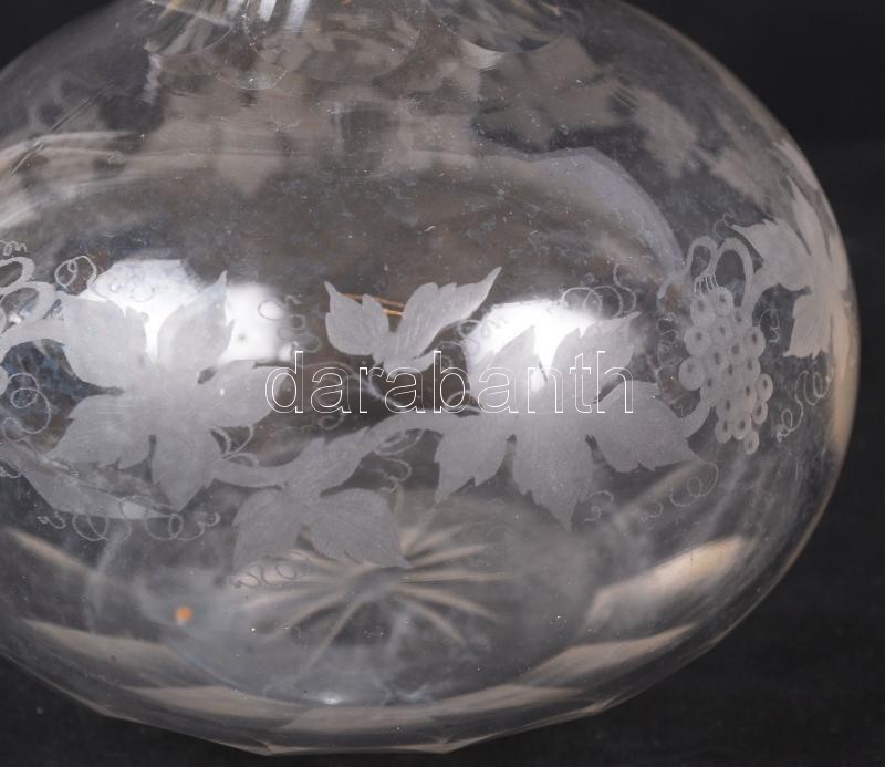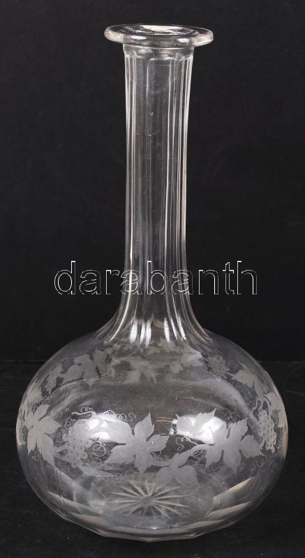 Borosüveg, csiszolt, hámozott szőlőmintás díszítéssel, m: 26 cm https://www.darabanth.com/hu/202-Gyorsarveres/202.0/Festmeny-mutargy-papirregiseg-egyeb/Uvegtargyak~200043/Borosuveg-csiszolt-hamozott-szolomintas-diszitessel-m-26-cm~II801932