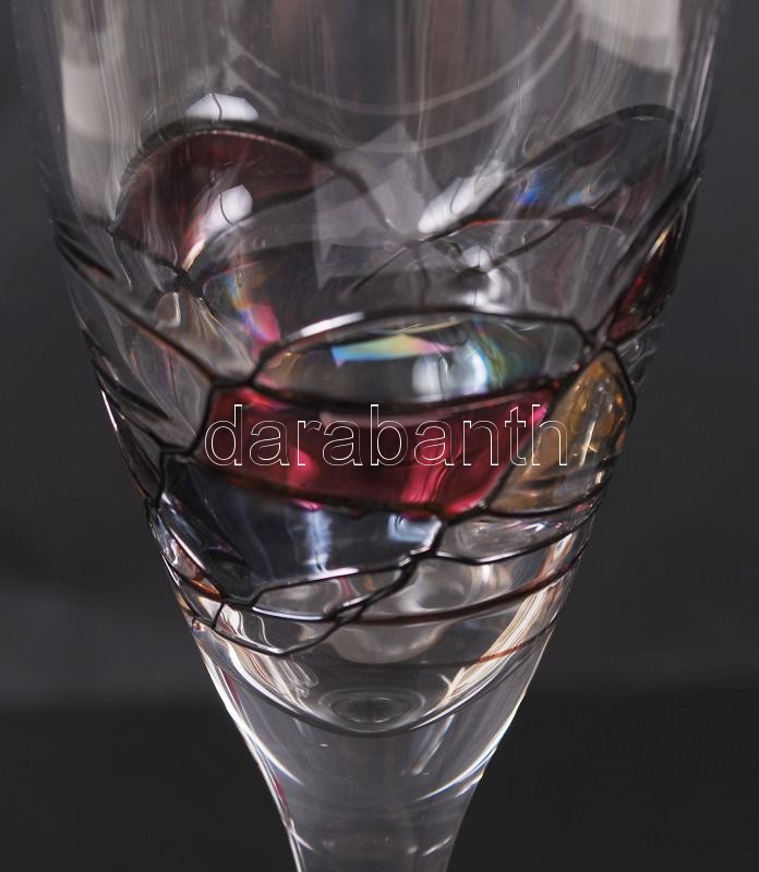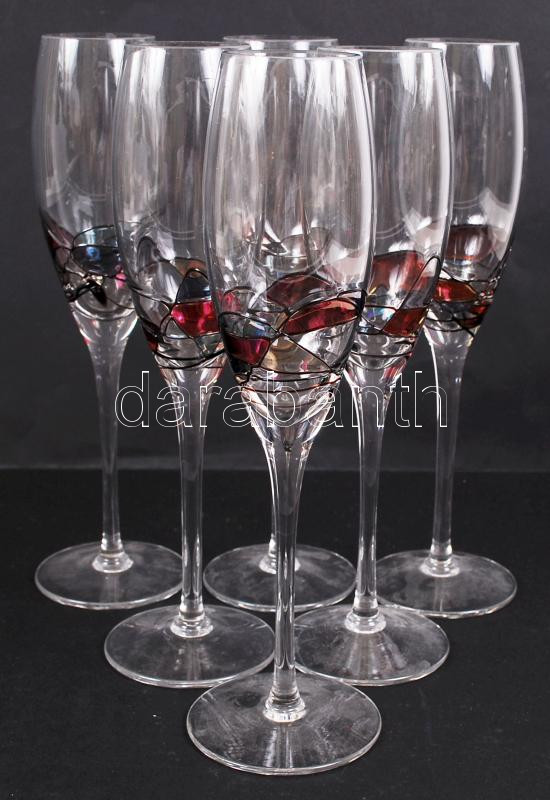 Leírás: Iparművész pezsgős pohár készlet, kézzel festett, hibátlan, összesen: 6db, m: 25 cm
