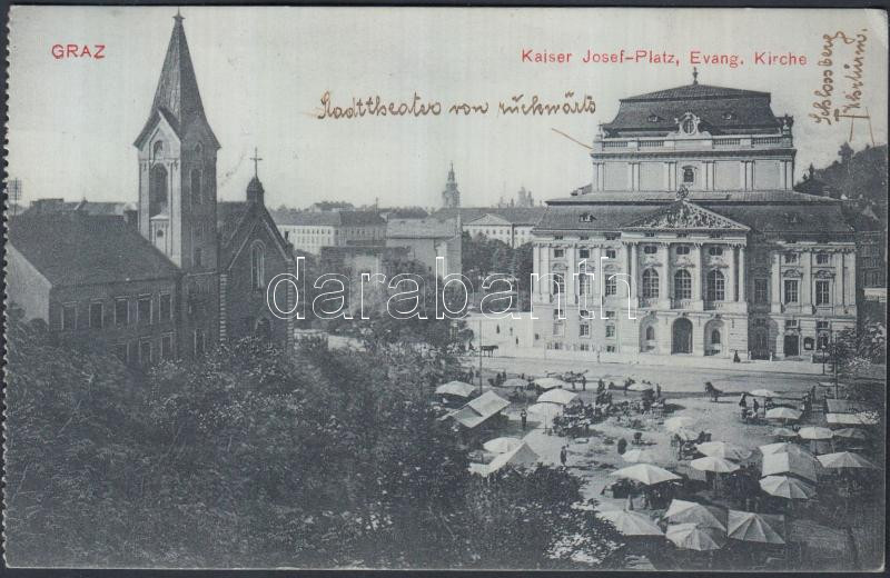 Graz, Kaiser Josef Platz, Evangelische Kirche / square, church (EK) https://www.darabanth.com/hu/202-Gyorsarveres/202.0/Kepeslapok/Ausztria~600034/Graz-Kaiser-Josef-Platz-Evangelische-Kirche-square-church-EK~II800373