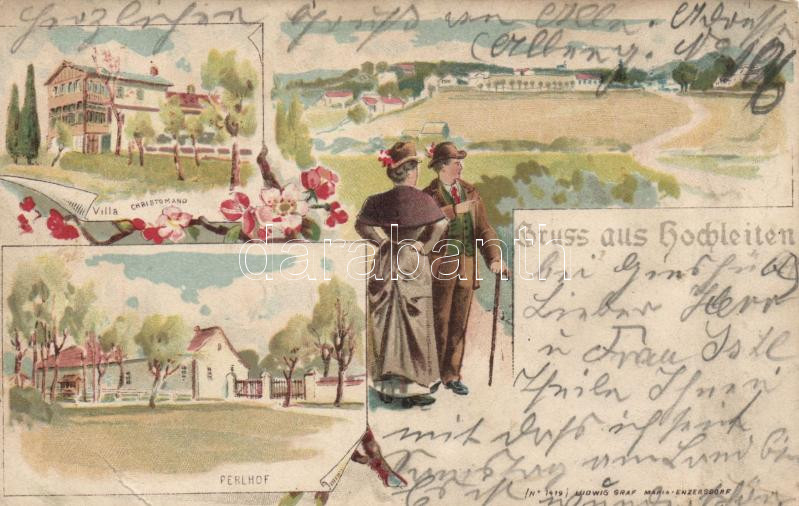 Leírás: Hochleiten, Perlhof, Villa Christomano, floral, litho (EB)