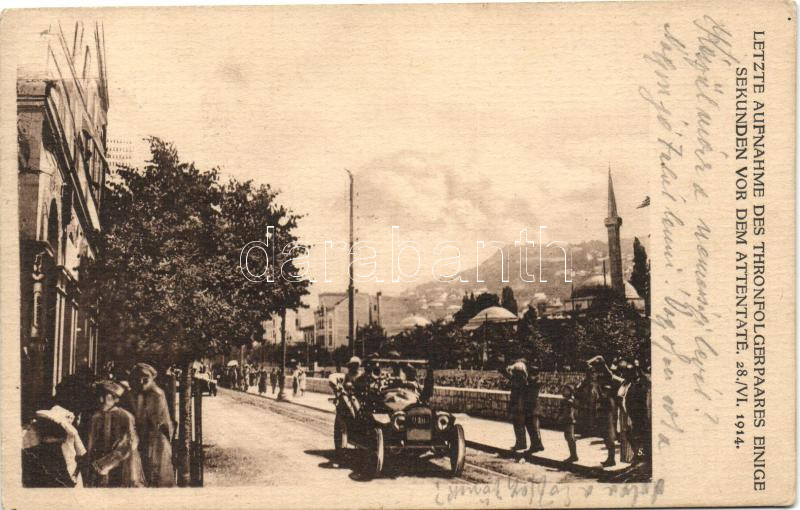 Sarajevo Franz Ferdinand and his wife before the assassination (EB) https://www.darabanth.com/hu/202-Gyorsarveres/202.0/Kepeslapok/Bosznia-Hercegovina~600042/Sarajevo-Franz-Ferdinand-and-his-wife-before-the-assassination-EB~II804409