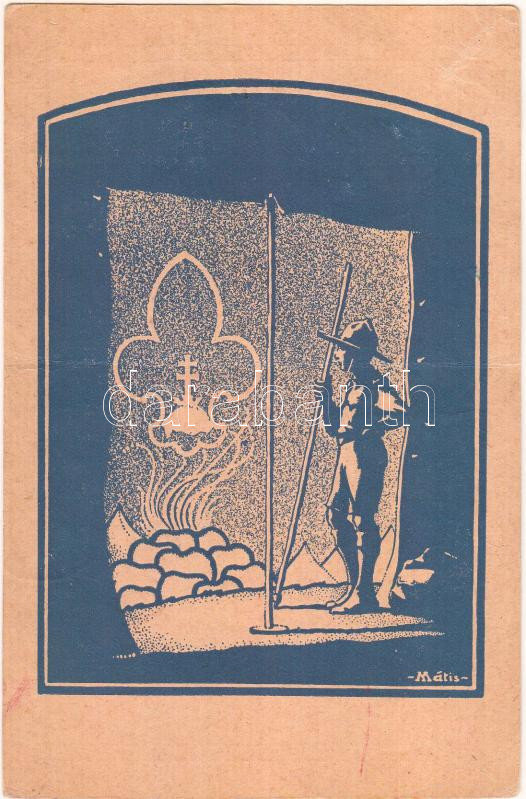 Leírás: A kecskeméti 110. számú Bethlen Gábor cserkészcsapat képeslapja / Hungarian scout card s: Mátis (fa)
