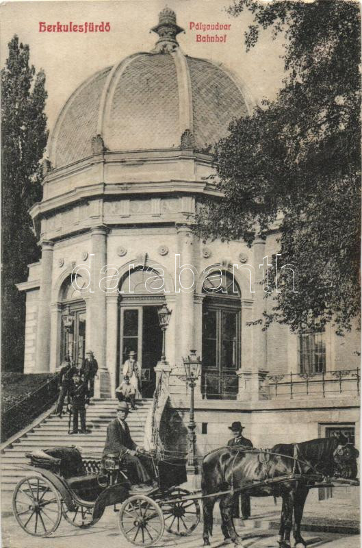 Herkulesfürdő vasútállomás / railway station (wet damage) https://www.darabanth.com/hu/202-Gyorsarveres/202.0/Kepeslapok/Erdely~400006/Herkulesfurdo-vasutallomas-railway-station-wet-damage~II804394