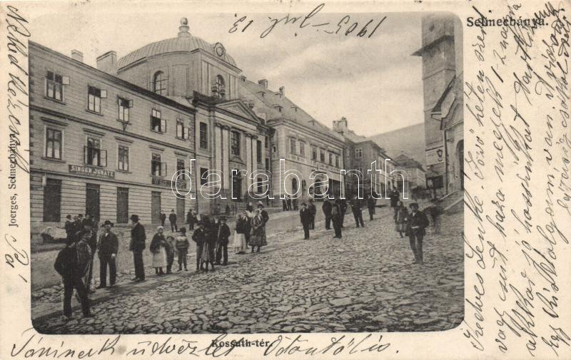 Leírás: Selmecbánya Kossuth tér, Singer Ignác üzlete / square, shop (EB)