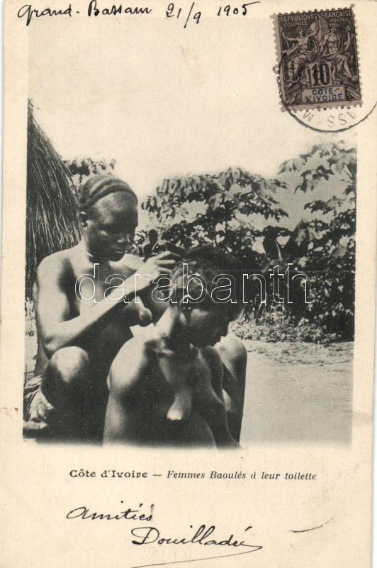 Leírás: Baoulé women, hair preparing, folklore